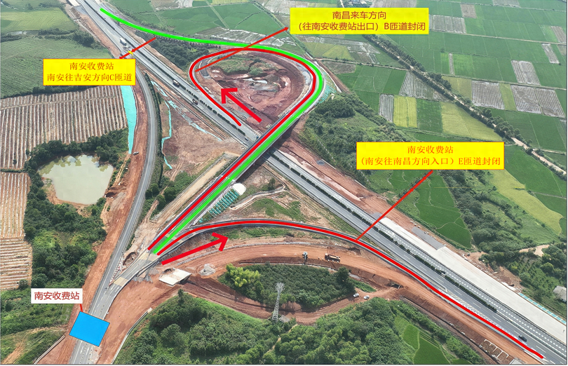 离南安收费站后,有三条路线可行至沪昆或东昌高速。路径一:沿S312、S528、G533通罗坊收费站后接入沪昆高速;路径二:沿S312、S528、G533至黄土岗收费站后接入沪昆高速;路径三:沿S312、G105至新干北收费站后接入东昌高速。预先了解路线并有效规划行程,有助于保障施工期间通行无阻。