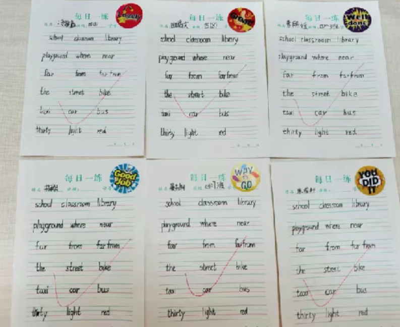 同学们普遍表示,经过对范本的临摹,他们在单词字母结构的掌握上有了显著提高。每周的临摹练习涉及约50至70个单词,这一数字亦从侧面反映了临摹练习的成效。