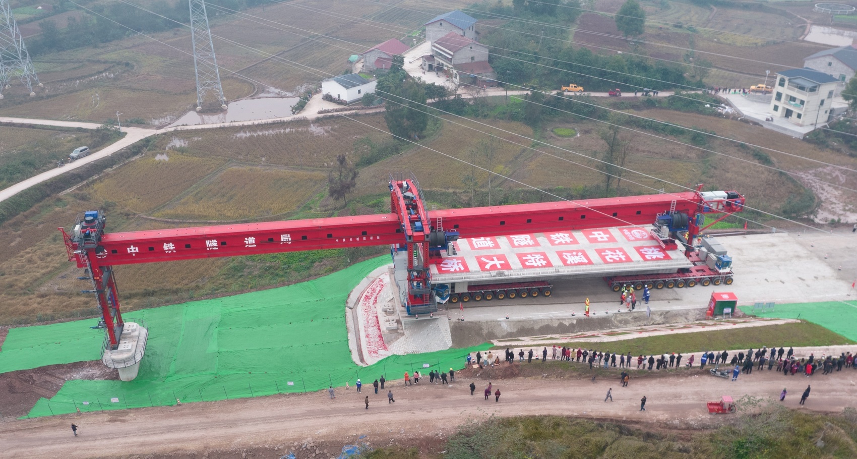 该箱梁全长32米,重量达724吨,属于钢筋混凝土结构简支梁类型。中铁隧道局相关责任人指出,箱梁架设需具备高精度,且技术标准严格。为此,11标二工区引入了国内领先的单一导梁架桥机。该设备确保箱梁能够顺利穿越隧道间的空间,同时满足桥隧连接及隧道内架设等特殊工艺需求,有效适应川东北地区高铁建设中桥梁隧道众多、地形以丘陵为主的特定要求。