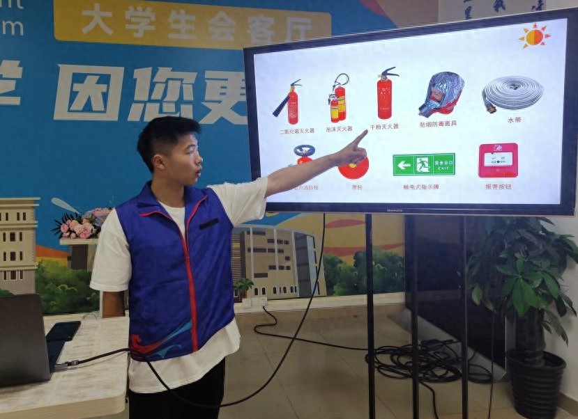 他参与了消防员执行的多项职责。例如,在海南大学校园中,他与消防员一同对消防设施进行了审查。在2023年9月的一次审查中,他深入学习了消防设施的检查、保养方法以及日常管理标准。另外,他还频繁参与线下消防安全宣传活动,通过与消防员的互动,不断丰富了自己的消防安全知识。