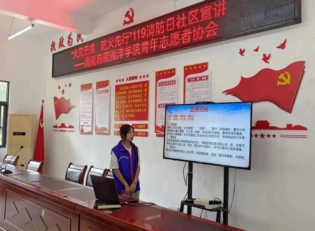 海南热带海洋学院2021级学生俞献彩对消防志愿服务抱有极大热情。他不仅亲自参与了超过10次消防志愿服务,还主动组织了这些活动,累积服务时长已超300小时。俞献彩精心选取了多起火灾案例,并将这些案例巧妙地融入了他的宣讲内容。在社区消防安全宣讲中,他以“火灾无情,预防为主”为核心主题,成功吸引了众多居民前来学习消防知识。