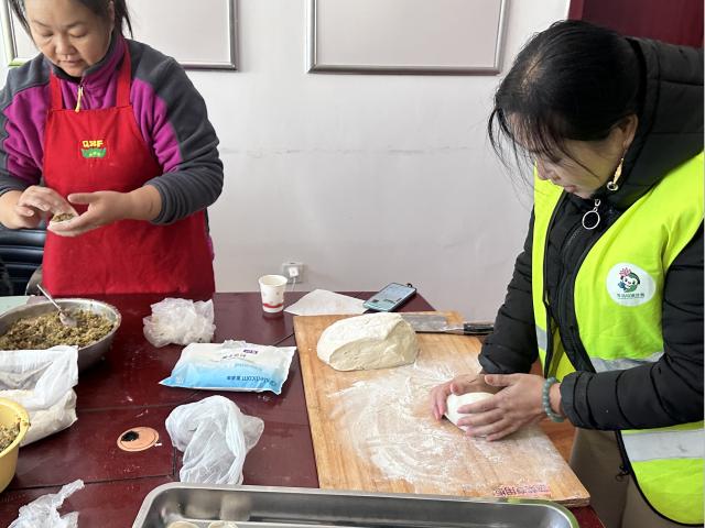 活动场所洋溢着热烈气氛,众人欢聚一堂。现场忙碌景象纷呈,从揉面到擀制饺子皮,再到包饺子,每个人都充满热情。社区志愿者与垃圾分类指导员们,在执行任务的同时,交流着过往经验,笑声此起彼伏。这种集体协作不仅展现了邻里间的和睦,也体现了大家参与活动的积极性。整个过程中,未出现任何争执或不适,所有参与者都沉浸在节日的喜悦中,全情投入活动。