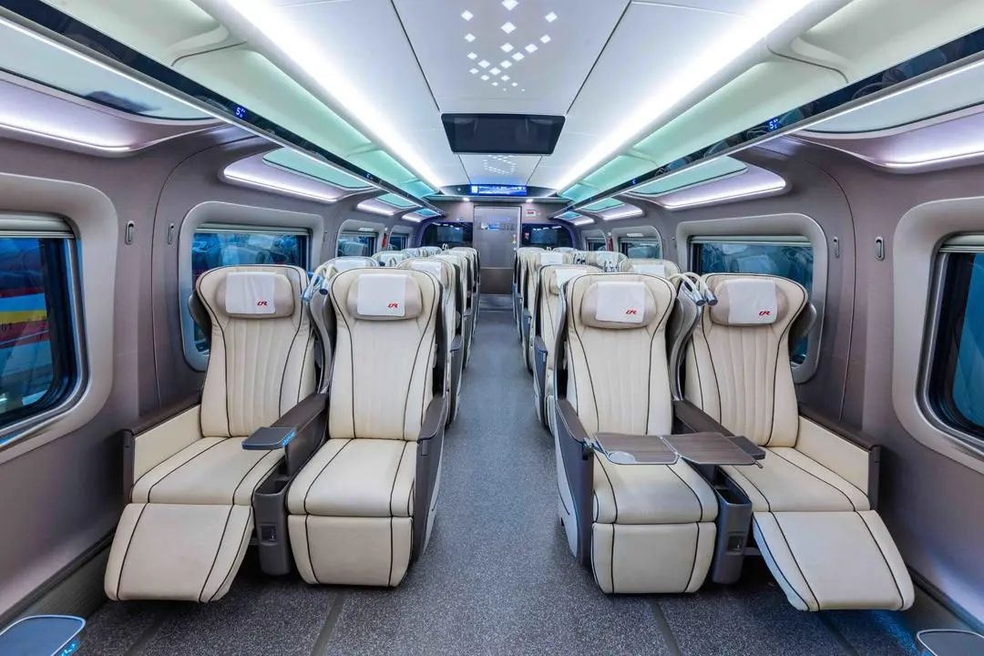 CR450动车组在服务品质上实现了显著进步。车厢内服务区域扩大了4%,从而为乘客带来了更宽敞的乘坐环境。无论是存放行李还是乘客活动,都变得更加便捷,充分展现了以乘客需求为核心的服务理念。