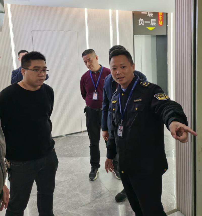 宝德时代广场中的惠丰超市人流量较大。检查小组和安全专家在此对物业管理方及电梯运营单位的相关负责人进行了访谈。他们旨在全面掌握商场电梯的日常使用和管理维护状况,以从根本层面识别电梯使用过程中可能存在的隐患。现场,他们展示了电梯故障的应急处理方法,这些措施是针对可能出现的紧急情况而采取的主动应对手段。