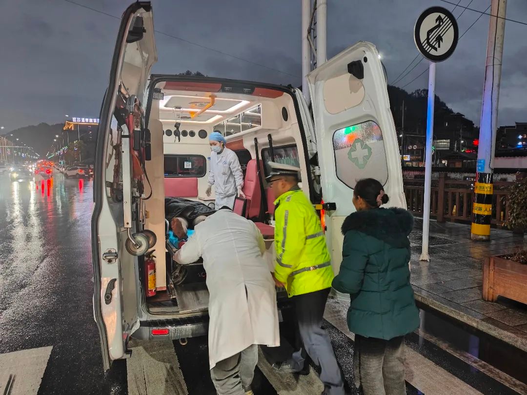 2月1日晚,杜田派出所警员巡逻时发现门口停着一辆救护车。经询问,得知车内有一位老人疑似食物中毒,状况紧急。警员们迅速协助医护人员将老人抬上救护车,并驾驶警车为其开辟通道。途中,他们指挥交通,提醒其他车辆让行,保障了道路畅通。到达医院后,老人家属对民警连声致谢,对他们使老人及时得到救治表示由衷感激。